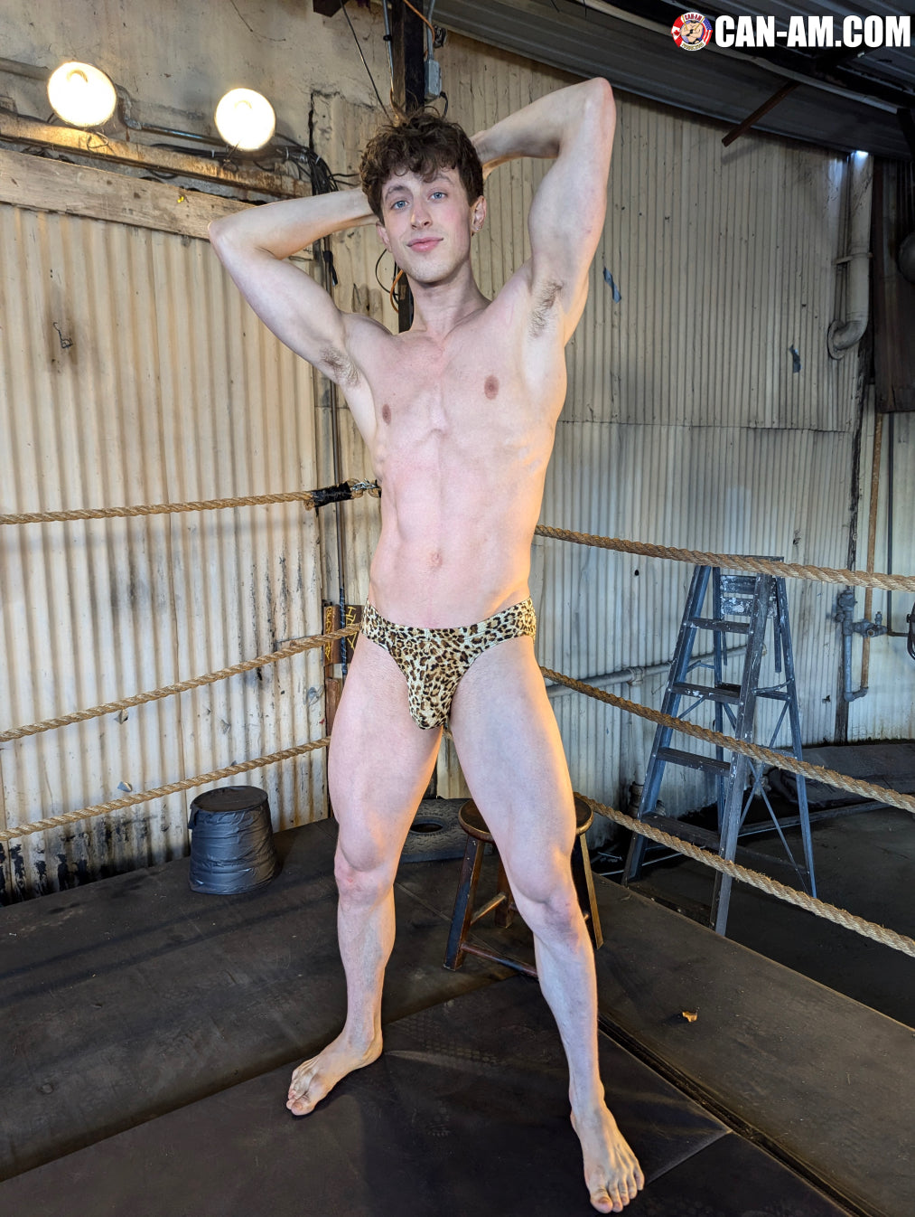 Smooth-skinned and clean-cut, Danny Dimples may be the prettiest boy to step into a Can-Am ring in years. His shredded body looks picture-perfect in those tight leopard trunks, and he certainly looks like a contender. But one look at grizzled heel Riff and you know what’s coming—looks alone won’t save this rookie.